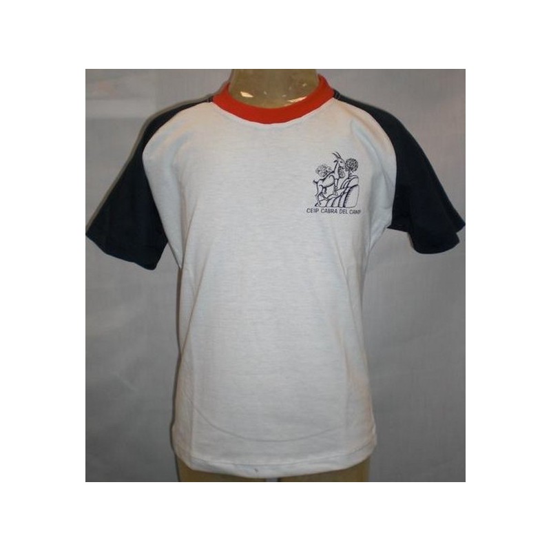 DESCRIPCIÓ: SAMARRETA BLANCA , MÀNIGUES RANGLAN MARINO , RIBET DEL COLL VERMELL . AMB LOGOTIP IMPRES EN SERIGRAFIA